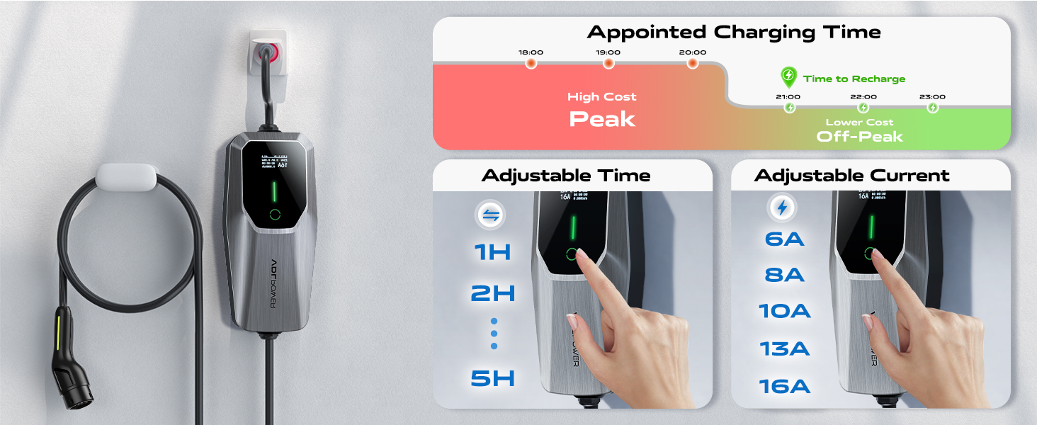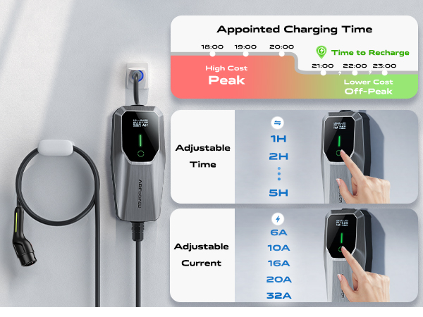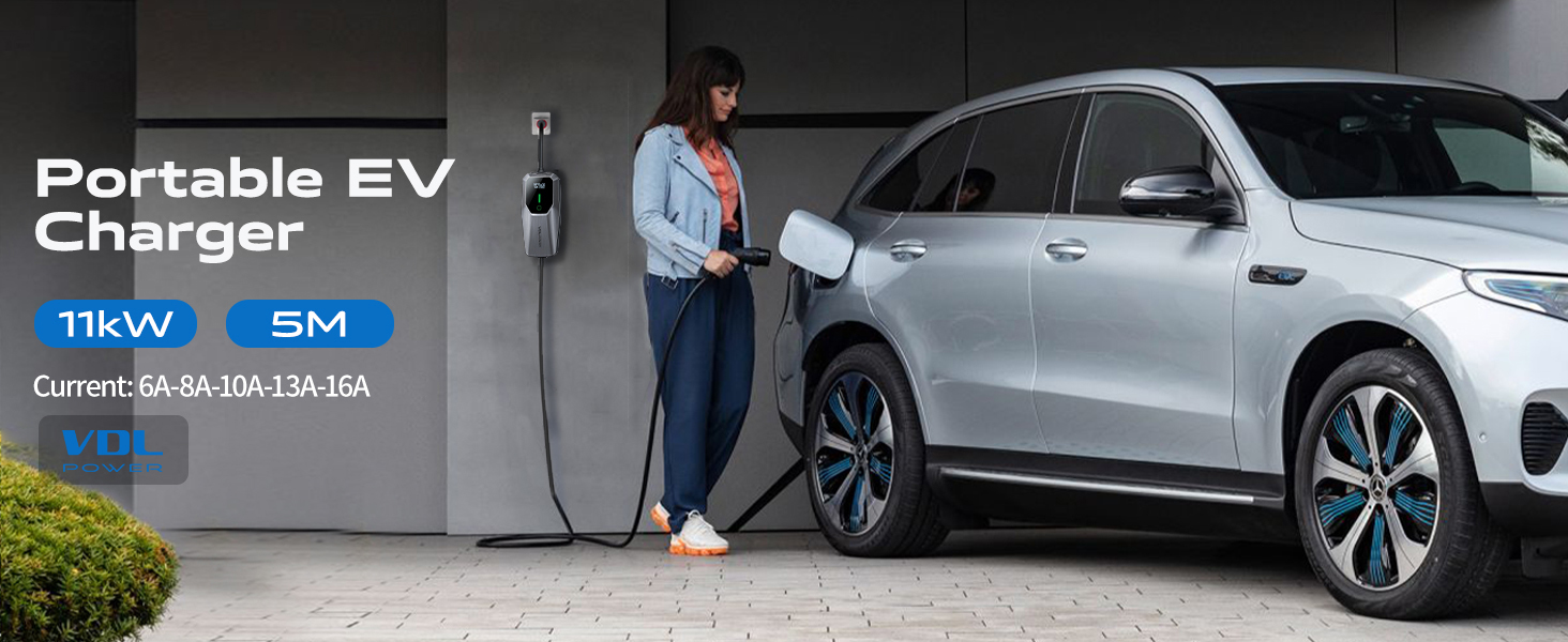 EV Charger 11kw,Type 2 EV Charger 6A/8A/10A/13A/16A, Variable, Home Electric Car Charger Cable, 5M, with CEE 3 Pin Charger, IP65 Waterproof | VDLPOWER EC31