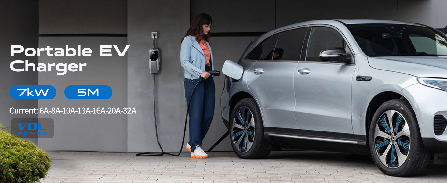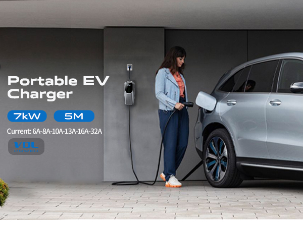 EV Charger 7.36kW, 6A/8A/10A/13A/16A/20A/24A/32A Variable, Home EV Charger Cable,5M Single Phase EV Charger Type 2, with CEE 3 Pin Charger with LED Display, IP65 | VDLPOWER EC21